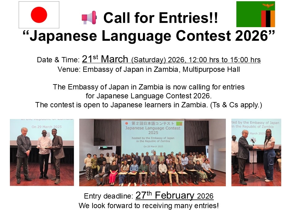 The Embassy of Japan in Zambia is now calling for entries for the Japanese Language Contest 2026.