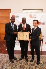 2月6日、日本大使公邸において、ザンビア教育省次官(技術サービス)のケルビン・マンブウェ博士臨席の下、サンデ・ンガランデ博士への外務大臣表彰伝達式が開催されました。
