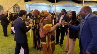 The reception also featured booths from 11 Japanese companies based in Zambia and South Africa, showcasing automobiles and a range of advanced technologies, products, and services. Guests enjoyed Japanese cuisine, including tempura and sushi, along with sake, which proved especially popular. Additionally, many participants visited a Japanese culture booth and enjoyed cross-cultural exchanges.